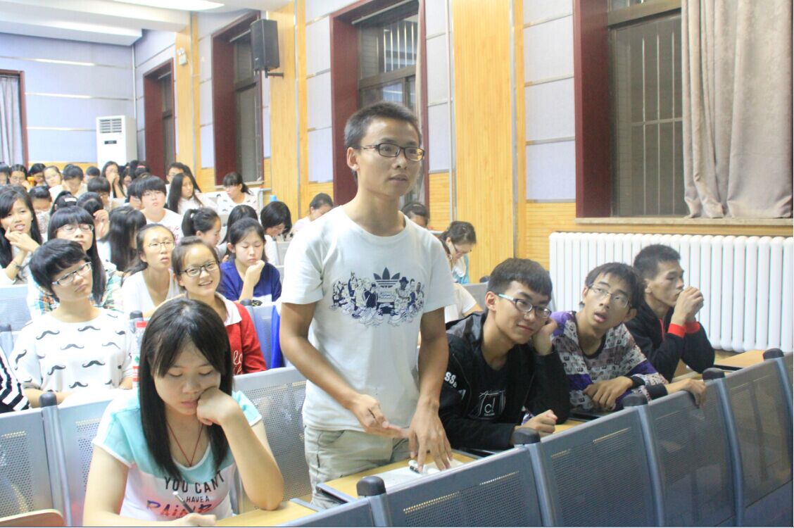 在见面会的交流中,胡满成教授就师范专业学生的学业规划、专业发展和科研项目三个方面进行了深入浅出的分析和详细的讲解。胡满成教授教导学生,进入大学首先需要树立明确的学习目标;同时,要学会做人、学会与人共事、培养社会能力和责任心;大学生活中师生之间应是良师益友的关系,学生应该在学习和生活方面多与老师进行沟通。同学们也积极踊跃地提出了自己的问题,胡满成教授为大家耐心地解答,并为大家传授亲身经验。整个过程生动又富有教育意义。