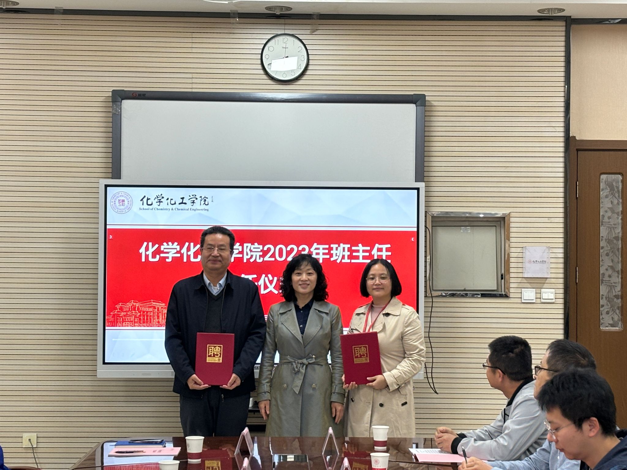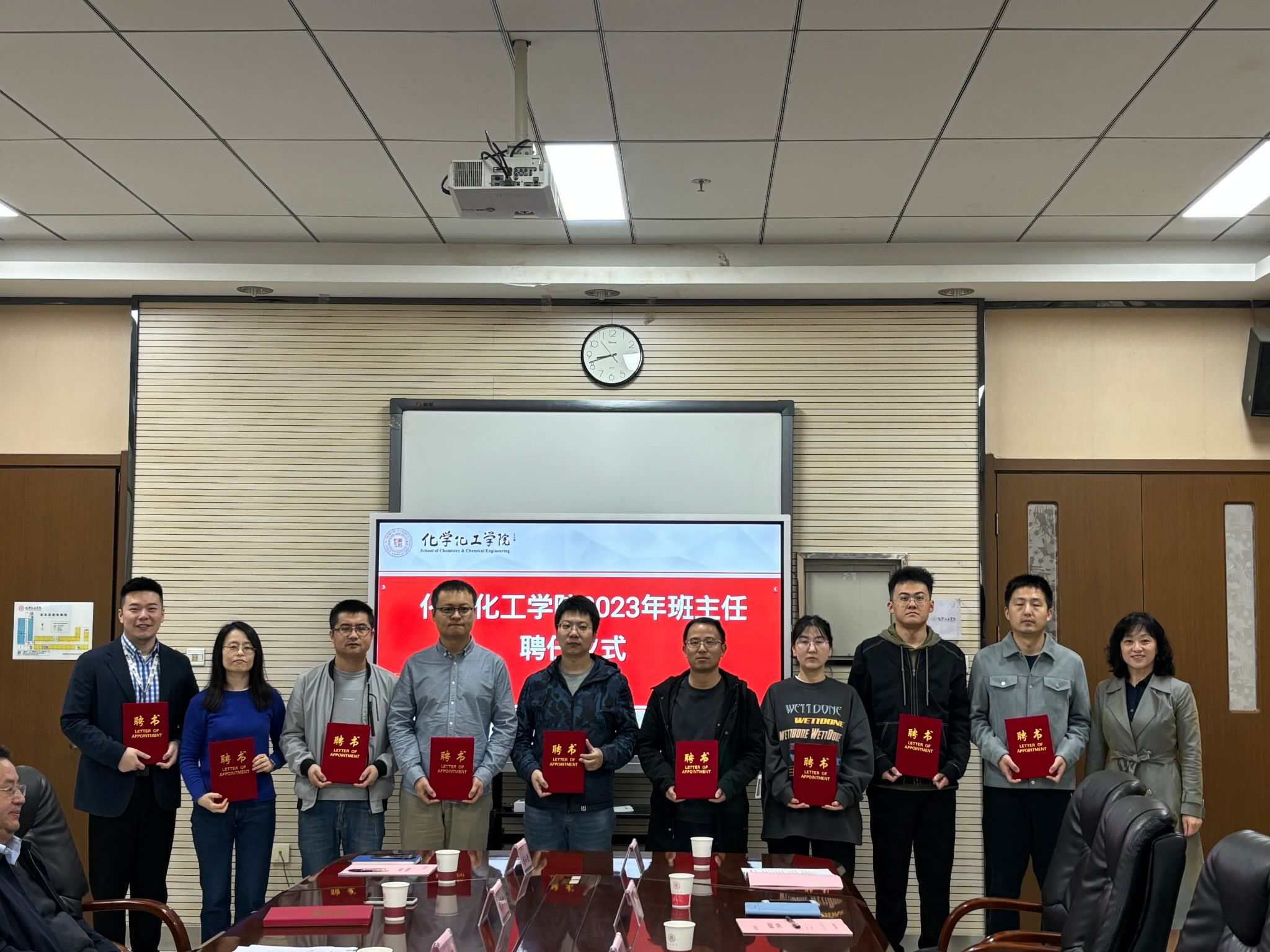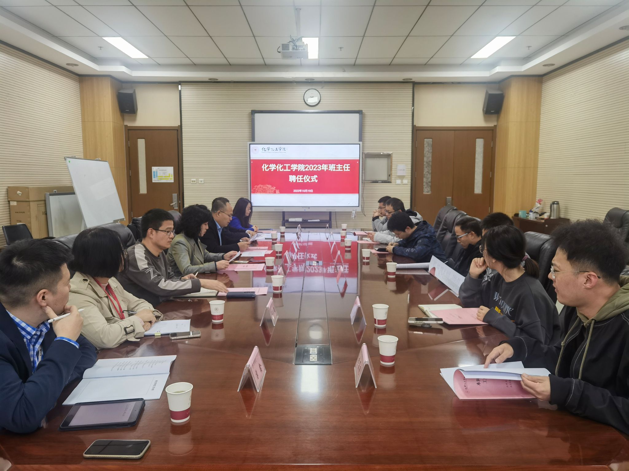 在致知楼1362会议室举行2023年本科生班主任聘任仪式。党委书记高玲香、党委副书记贾颍辉、副院长翟全国、2023年新任本科生项目主任和学业班主任及相关辅导员参加会议。