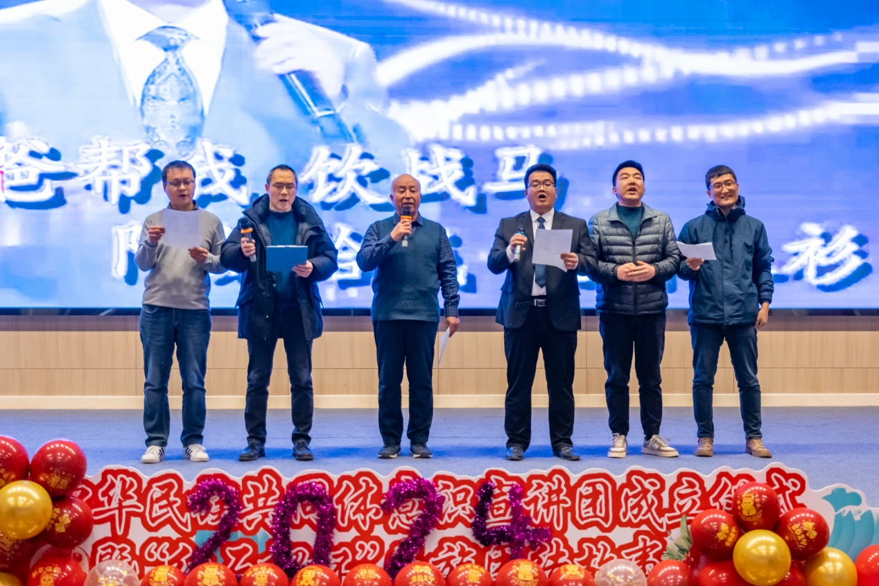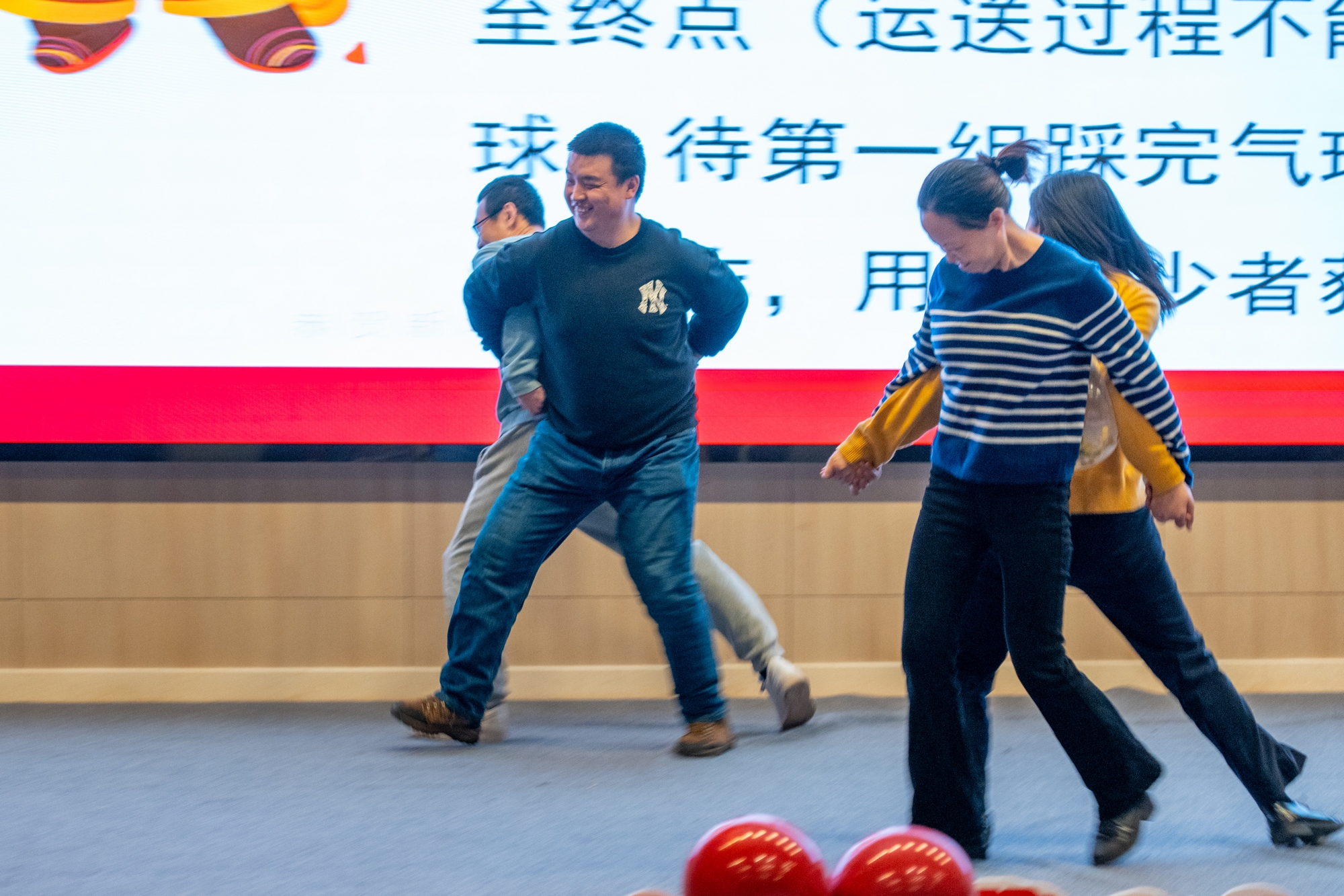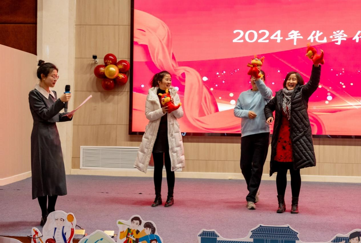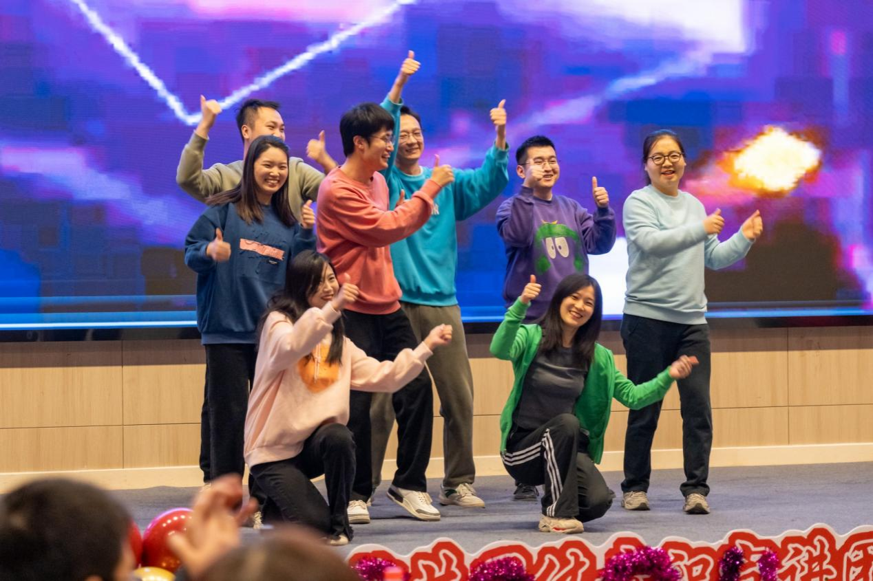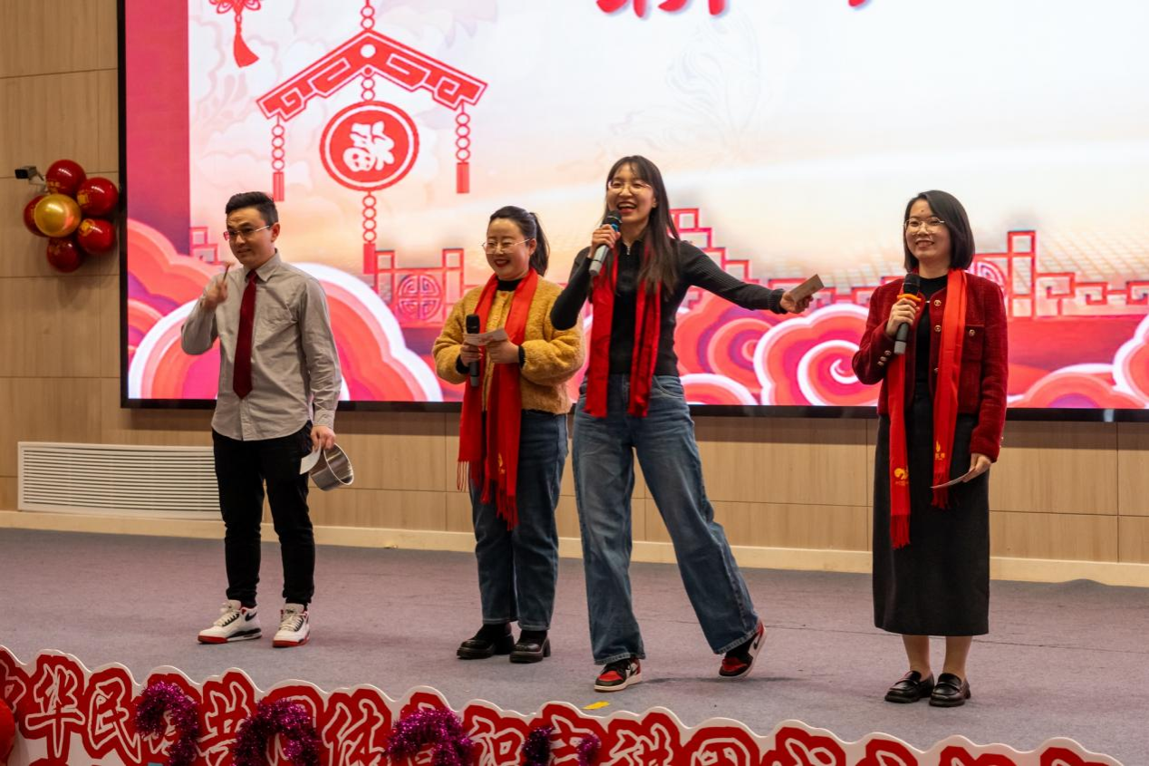 联欢会在悠扬婉转的合唱歌曲《红梅赞》中拉开帷幕。各工会小组的老师们纷纷登台,一展身手。自编自演的三句半《新年新发展》、老中青合唱《骏马奔驰保边疆》、舞蹈《天天向上》、独唱《大约在冬季》、吉他弹唱《大梦+外面的世界》、独唱《滚滚长江东逝水》、小合唱《布谷鸟》、武术表演《中国风》、歌曲串烧《仙儿+绿袖子+情字路上》、独唱《春江花月夜》、书法展示《迎新春》、小合唱《明天会更好》等节目接连上演。现场精彩纷呈,气氛欢快,引来全场阵阵欢呼。