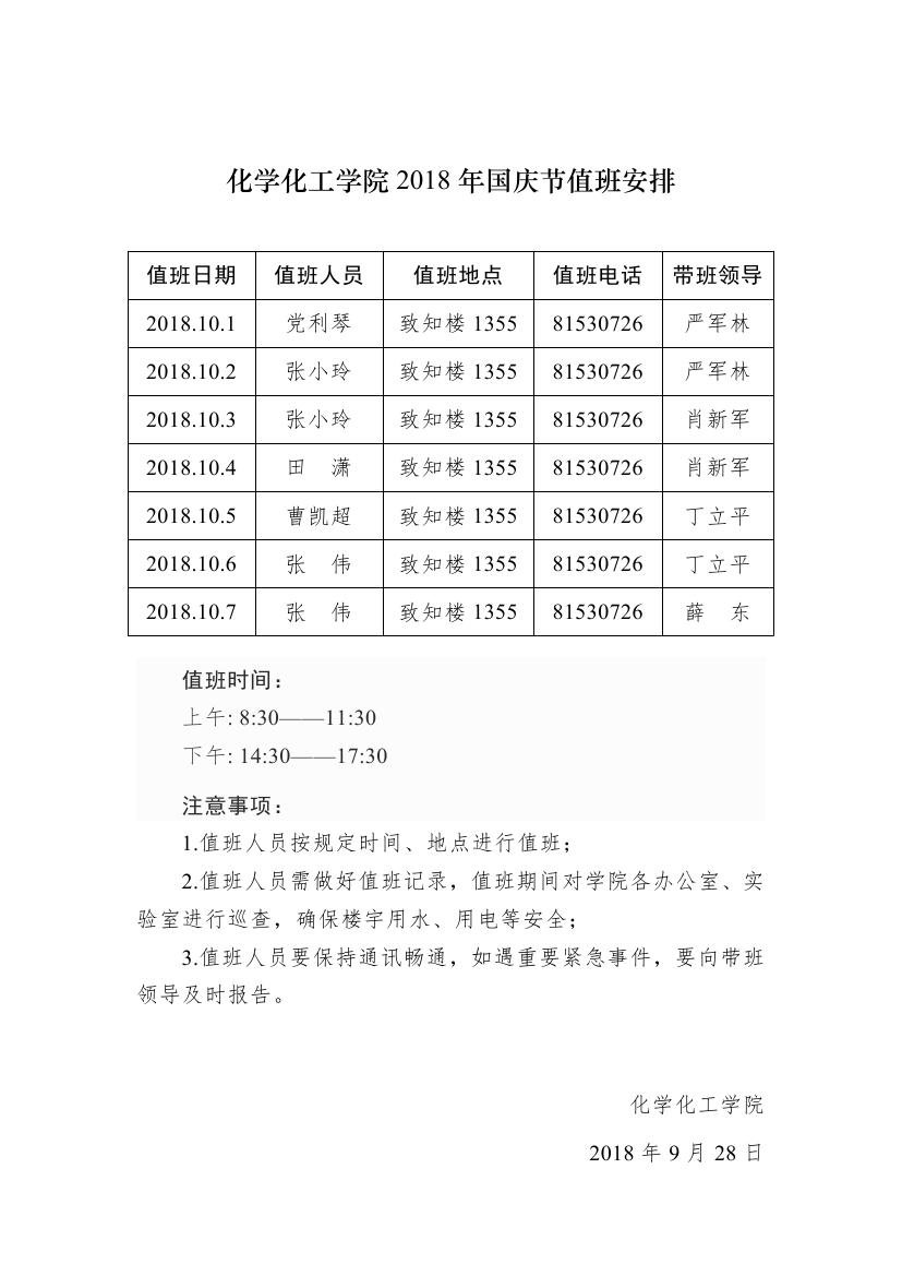 色情影片 2018年国庆节值班安排