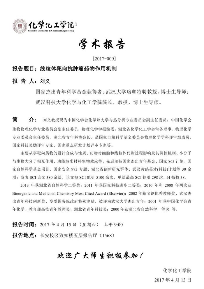刘义教授学术报告预告[2017-009]