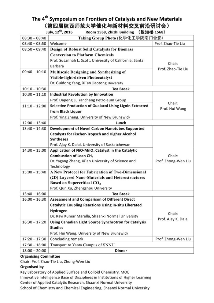 The 4th Symposium on Frontiers of Catalysis and New Materials