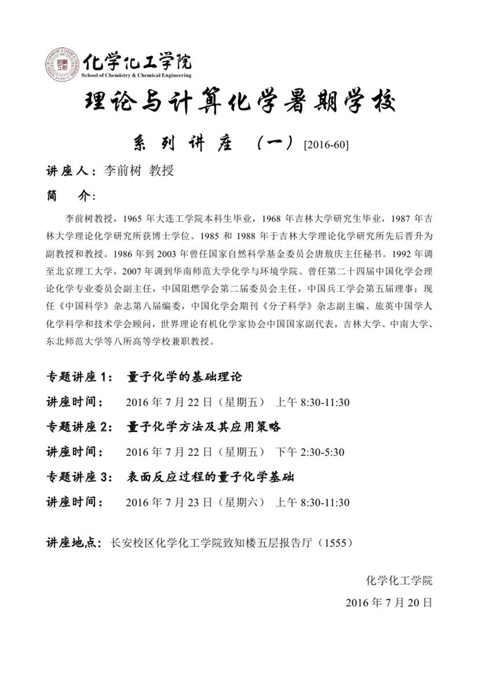 理论与计算化学暑期学校系列讲座