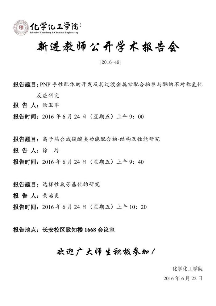 新进教师公开学术预告[2016-49]