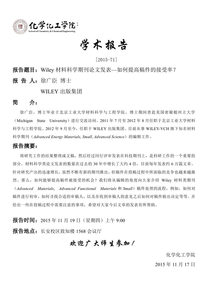 学术报告预告[2015-71]
